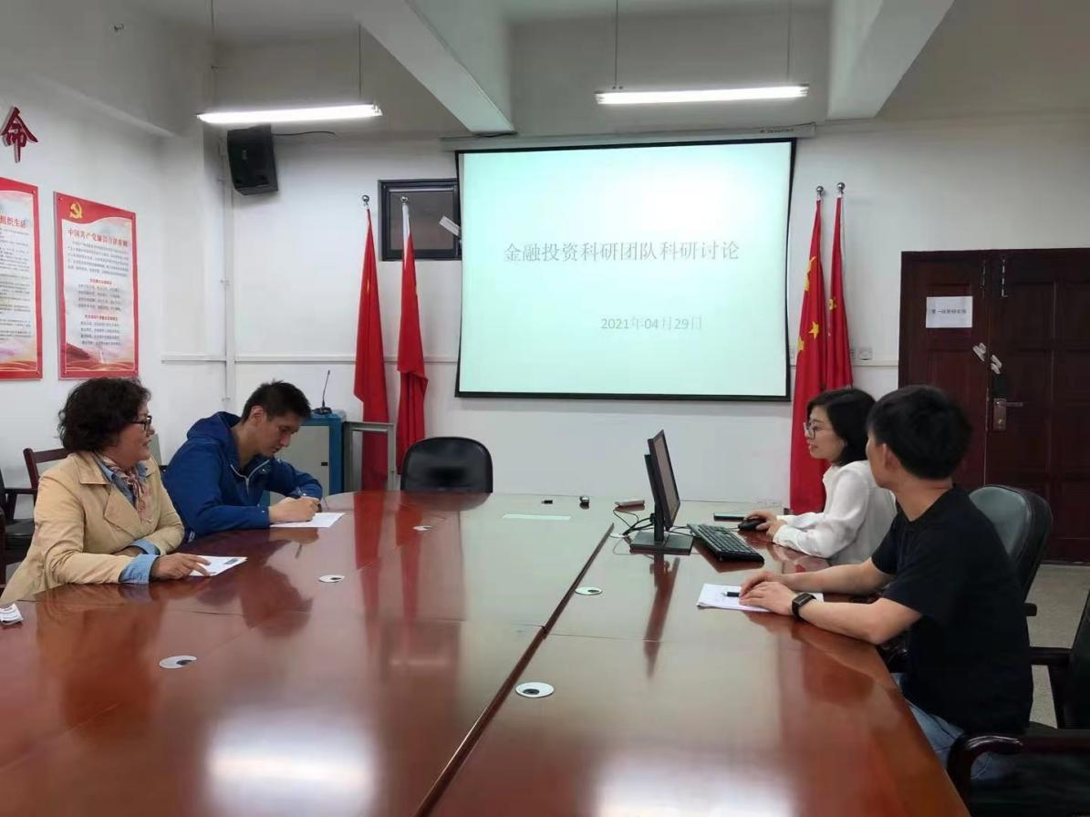 4月29日下午 ,Beat365中文官方网站金融投资科研团队成员在崇德楼315左召开学术讨论会议,此次会议由王滨教授、郭雪博士及吴磊博士汇报个人近期科研成果及进展。