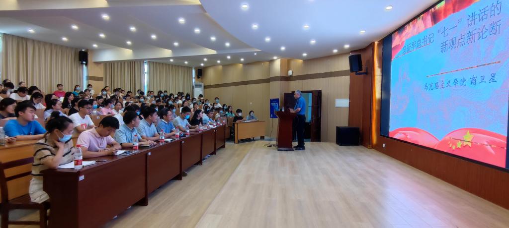 商卫星教授以《习近平总书记“七一”重要讲话新观点新论断》为主题作宣讲。宣讲中,商卫星教授基于习近平总书记在庆祝中国共产党成立100周年大会上的讲话原文,结合具体数据、案例、史实,准确、深入的阐述了讲话的重大意义。他指出,习近平总书记“七一”重要讲话庄严宣告了第一个百年历史奋斗目标已成功实现,首次提出了实现中华民族伟大复兴是贯穿中国共产党百年奋斗主题的重大观点,凝练概括了伟大建党精神,全面梳理了中国共产党团结带领全国人民取得的四个伟大成就与庄严宣告,系统阐述了以史为鉴、开创未来的“九个必须”根本要求是新时代中国共产党人不忘初心、牢记使命的政治宣言,着重强调了港澳台方针。他强调,习近平总书记“七一”重要讲话是激励全党全国各族人民向第二个百年奋斗目标进军的政治宣言和行动纲领,在讲话中习近平总书记特别提及青年并对广大青年提出了深情号召与殷切期望,作为新时代青年大学生要全力响应伟大号召,奋力创造新奇迹、不断展现新气象。