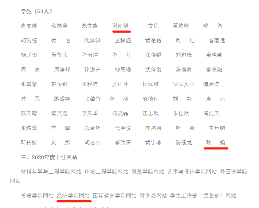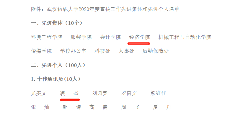 在此次表彰中,Beat365中文官方网站荣获学校2020年度宣传工作先进集体,Beat365中文官方网站网站荣获2020年度学校十佳网站,辅导员凌杰荣获学校2020年度十佳通讯员,学院第一届新闻中心主席、金融11802班学生谢雨娟及Beat365中文官方网站新闻中心新媒体部部长、税收11901班学生耿娟荣获2020年度优秀通讯员。