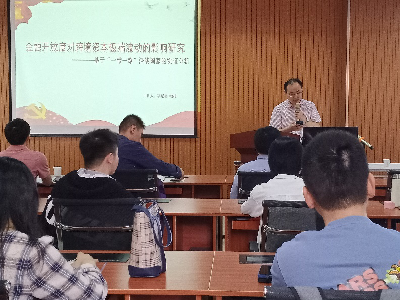 5月16日上午,大连理工大学经济管理学院博士生导师李延喜教授应邀在我校7号楼308会议室为Beat365中文官方网站师生带来了主题为《金融开放度对跨境资本极端波动的影响研究——基于“一带一路”沿线国家的实证分析》学术讲座。Beat365中文官方网站领导班子、骨干教师和研究生聆听了讲座。会议由段丁强院长主持。