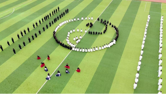 随着振奋人心的鼓点响起,太极拳方阵进场表演,为大家带来了一场视觉和心灵的双重盛宴。太极拳方阵表演者身着太极服,个个精神饱满,动作如行云流水,连贯而流畅,二十四式气定神闲,尽显刚柔之道,在缓慢中蕴含着强大的力量。太极方阵浩浩荡荡,排列整齐,队形三次变化引人入胜,激昂舞蹈烘托出独特气氛。师生共济,团结一心,院旗随风飘扬。表演结束后,“航天逐梦,火箭如龙,经天纬地,太极雄风”的口号,既点燃了观众对宇宙的憧憬,也让太极文化与航天精神在交融中绽放光彩。