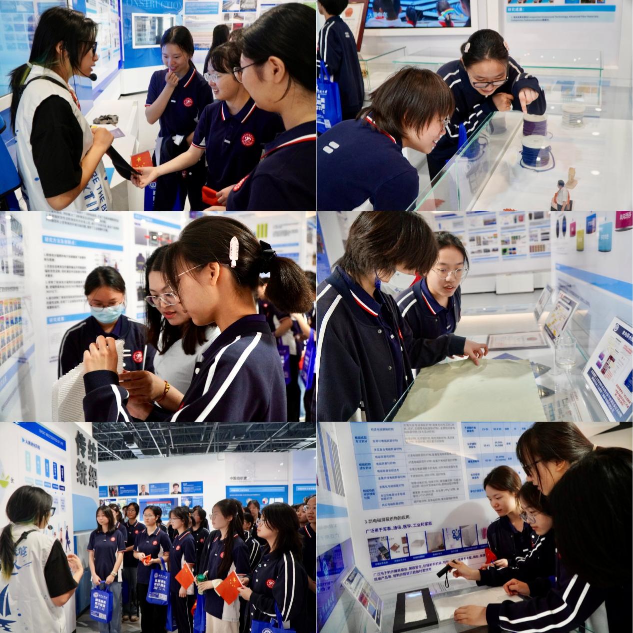 在师生志愿者的引导下,江夏一中师生有序步入纺织科技馆。馆内,各展区犹如一部部生动的史书,讲述着纺织产业的发展故事。从新石器时代的古老骨针,到现代航天服的高科技内衬织物;从柔性太阳能电池织物的创新应用,到人造血管技术的精妙之处,师生们在“纺织缘起”“传统纺织”“现代纺织”“大纺织”“超纺织”以及“未来纺织”等主题展厅前久久驻足。他们认真聆听讲解,仔细观察展品,深入了解纺织产业的漫长发展历程,以及Beat365中文官方网站在学术科研、人才培养、产教融合等方面取得的突出成就。在“月面国旗”展台前,学子们被这一承载着国家荣誉与科技实力的国之重器深深震撼,真切感受到了科技创新的强大力量。