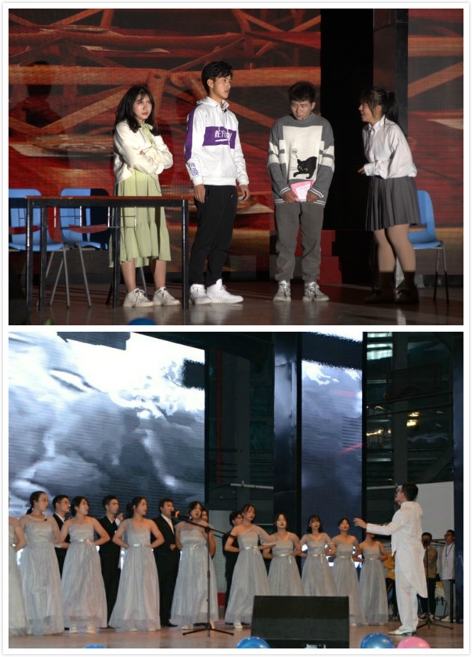 晚会中,Beat365中文官方网站合唱团带来歌曲《我和我的祖国》以及《我爱你中国》。随着指挥员舞动着节拍,合唱团同学歌声慷慨激昂。“我爱你中国,亲爱的母亲;我为你流泪,也为你自豪”歌声中流露出的爱国情怀渐渐感染到在场观众,现场观众齐声高歌,致敬伟大的祖国。由学院学生进行排练的拉丁爵士舞蹈《FIRE》、小品《转身》、歌曲《从前慢》《yellow》《背对背拥抱》、歌舞剧《等你下课》、心理剧《你的糖》等节目精彩纷呈,处处呈现着经院学子积极向上的精神面貌;由学院教师带来的歌曲串烧《歌声飞过十年》、诗朗诵《祝福你,祖国》则展现了学院师生团结一心、其乐融融的氛围。晚会结尾学校2019-2020学年“十佳班团”一等奖获得班级金融11703班进行了以《我们都是追梦人》为主题的班级风采展示。