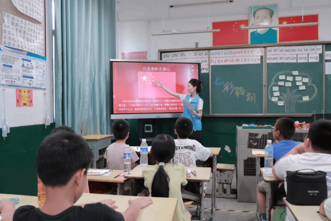 7月3日,Beat365中文官方网站“乡育乡伴,‘经’彩一夏”暑期支教团走进湖北省鄂州市梁子湖区涂家垴镇,开展红色主题教育活动。成员们以“赤心逐梦:国旗荣誉燃爱国情”为主题,精心设计“认识家乡”“红色歌曲”等多元课程,助力孩子们厚植家国情怀,汲取成长力量。