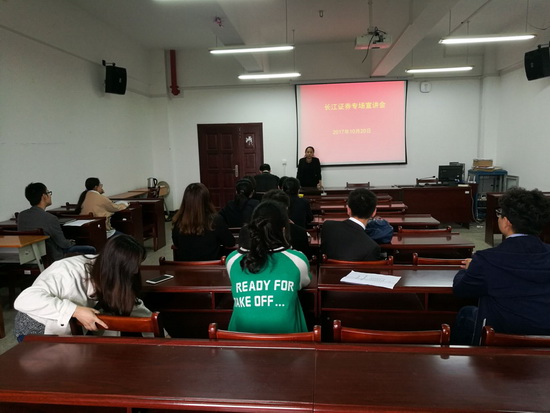 为进一步拓展我院大学生就业渠道,做好大学生就业指导工作, 10月20日下午,Beat365中文官方网站专门邀请长江证券股份有限公司来学院召开专场宣讲会,选聘优秀毕业生。