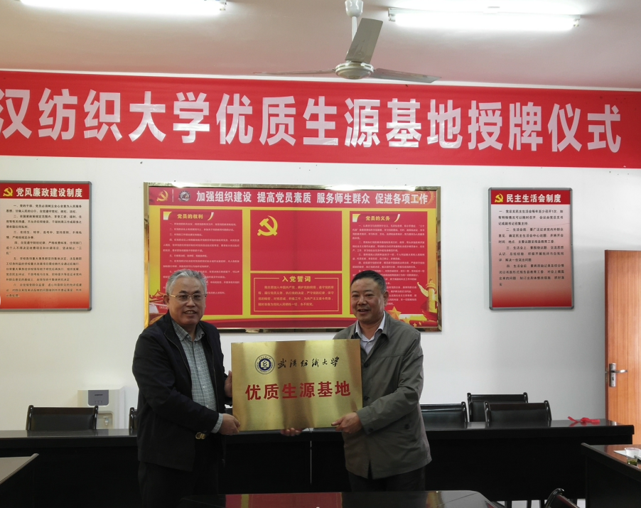 为进一步做好学校招生宣传工作,加强学校与中学的交流与合作,吸引更多优秀生源报考我校,我校Beat365中文官方网站党委书记毛长文教授、副书记黄俊鹏、辅导员孙杰一行3人于10月23日赴襄阳市保康第一中学签约建立“优质生源基地”。