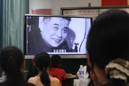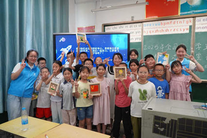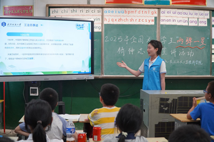 在斗山村村部,宣讲成员彭琦博以“国家如成长少年”作喻,将科研人员赴戈壁探索比作“绘制藏宝图”,用“沙滩演算公式”的照片解释:“他们追寻的是让国家强大的科学密码。”小学生们专注聆听,有孩子举手提问“戈壁滩的风沙不会影响他们吗?”彭琦博回应“就像我们玩耍时难免遇到小阻碍,他们对科学答案的渴求,让这些困难变得微不足道。”让“好奇是探索起点”的认知悄然扎根。