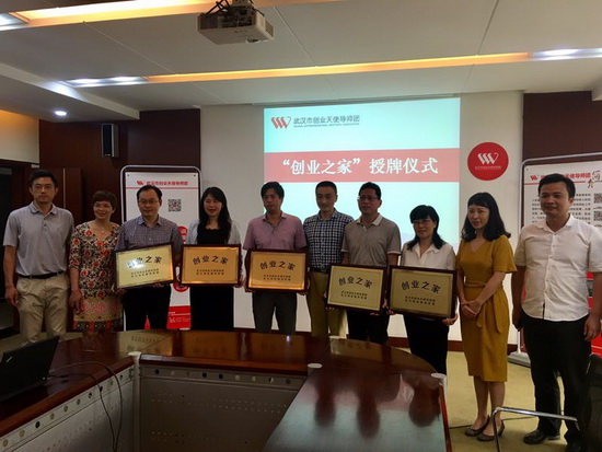 会上,武汉市中小企业职业教育指导中心副主任王鹏分别向中南民族大学、湖北中医药大学、湖北Beat365中文官方网站、武汉工程科技学院及我校在内的五所高校授“创业之家”铭牌。