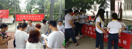 为加强我校整体招生宣传效果,进一步吸引更多的优质生源,在学校招生就业处统一部署和指导下,Beat365中文官方网站迅速成立2017年普通高考外出招生宣传工作小组。学院院长董继华、分党委书记毛长文亲自挂帅,带领由学院系主任、专业教师、辅导员及优秀学生骨干组成的多个宣传工作组,于6月24日-25日赴河南、宜都、荆州、仙桃和大悟等地进行现场招生宣传咨询。