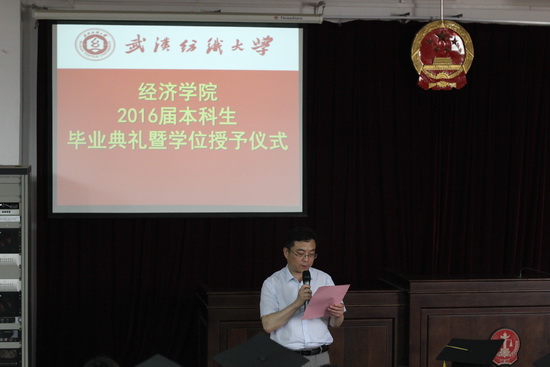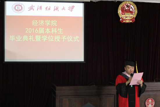 优秀毕业生代表金融11202班夏杨同学与在场师生共同回忆了大学四年生活中太多的“第一次”,军训场上被炙热太阳烤黑的脸庞,暑期“三下乡”社会实践活动中与留守儿童的温馨笑容,运动会上“经济经济,威武霸气”那震耳欲聋的呐喊声……都是同学们永恒的青春回忆,展现了“经世致用、经天纬地”的精神。