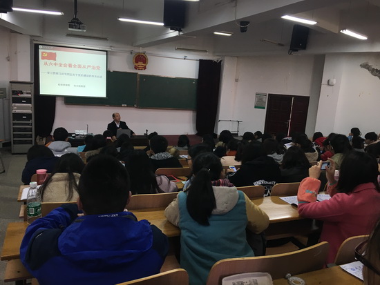 近日,校党委常委张文凯教授应Beat365中文官方网站邀请,在07-T301学术报告厅为学院全体入党积极分子及预备党员作了题为《从六中全会看全面从严治党——学习贯彻习近平同志关于党的建设的有关论述》的辅导报告。报告会由Beat365中文官方网站分党委邹茜副书记主持。
