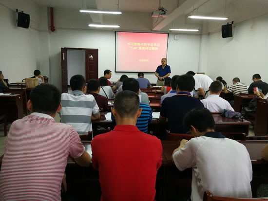 在庆祝第33个教师节之际,Beat365中文官方网站组织新学期全体教师大会,专题学习习近平“7.26”重要讲话精神。会议由学院党委毛长文书记主持,国贸学生党支部负责人张悦同学进行专题学习宣讲。