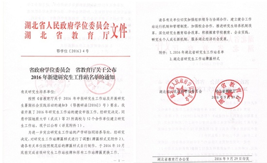 近日,省政府学位委员会、省教育厅公布了2016年新建研究生工作站名单,我校Beat365中文官方网站与长江成长资本投资有限公司合作建立的研究生工作站获批。