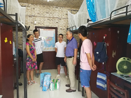 自7月16日以来,武汉迎来了一次“超长待机”版的高温天气。目前已入中伏,是一年中气温最高最炎热的时期。为了了解考研学生的备考情况,帮助他们树立考研信心,7月25日上午,Beat365中文官方网站党委毛长文书记、邹茜副书记和辅导员张颖老师一行人顶着炎炎烈日,先后到阳光校区10栋学生宿舍、学院考研自习室走访慰问留校考研学生。