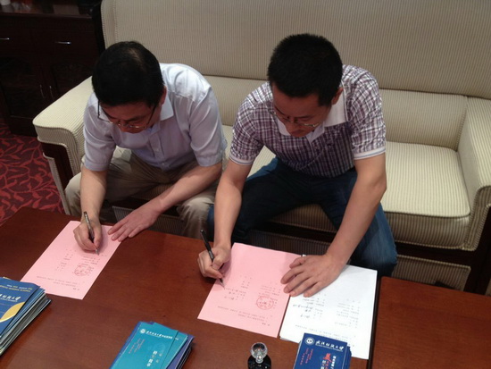 在枝江一中,熊少平书记与副校长石雪山签订优质生源基地合作协议,并就共建人才输送、选拔和培养的有效机制开展研讨,石校长表示将输入更多优质生源到纺大校园。