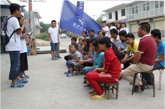 (实践队为乡民们宣讲社会主义核心价值观)