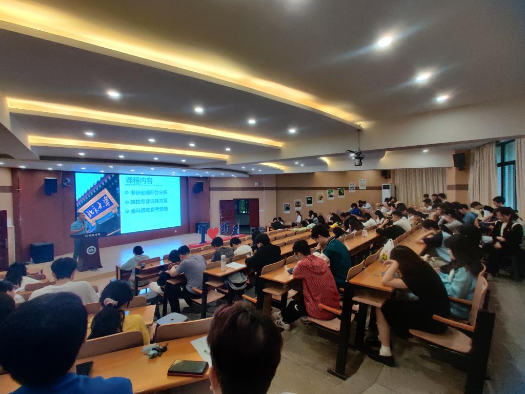 会上,谭晓禹老师结合近几年的考研报考、录取等数据,分析了近年大学生毕业的就业形势、考研的优势以及各专业的就业前景,详细讲解了院校选择、考研报名等注意事项。同时,就如何进行复习备考,谭晓禹提出了自我规划、自主学习、补足知识结构等建议。他表示,与本科时期不同的是,研究生阶段更加注重学术研究的深入和实践能力的提升,要想实现从本科生到研究生的转换,就要建立自己的研究方向和兴趣,以乐观向上、不惧失败的平和心态,积极参加科研活动和实践项目。