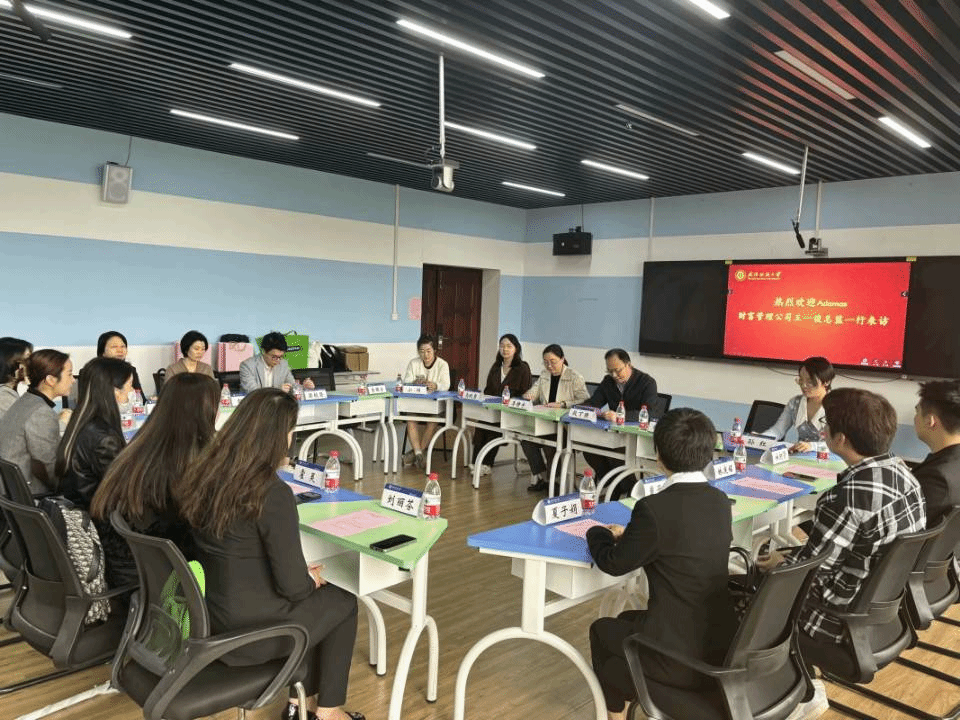 段丁强在会上对Adamas财富管理公司一行的到访表示热烈欢迎并指出,学生研学交流国际化是顺势所趋,希望今后能够多交流、常交流,共同积极探讨高校与企业的合作模式。王一俊表示,经此一行,她深切感受到学院对此次座谈会的重视。她以自身的工作经历和个人见解,详细介绍了公司现状、香港招生情况和最新升学政策,同时分享了去年学生代表在香港的研学生活,期望同学们继续通过香港这个桥梁,与世界接轨。刘园美详细介绍了学院的办学定位、办学成效以及学生就业升学三个重要方面,表示学院一贯注重学生综合素质的培养,坚持以就业为导向,经过多年的发展,学院为财税、金融、国贸等社会经济领域输送了一大批高素质复合型人才。