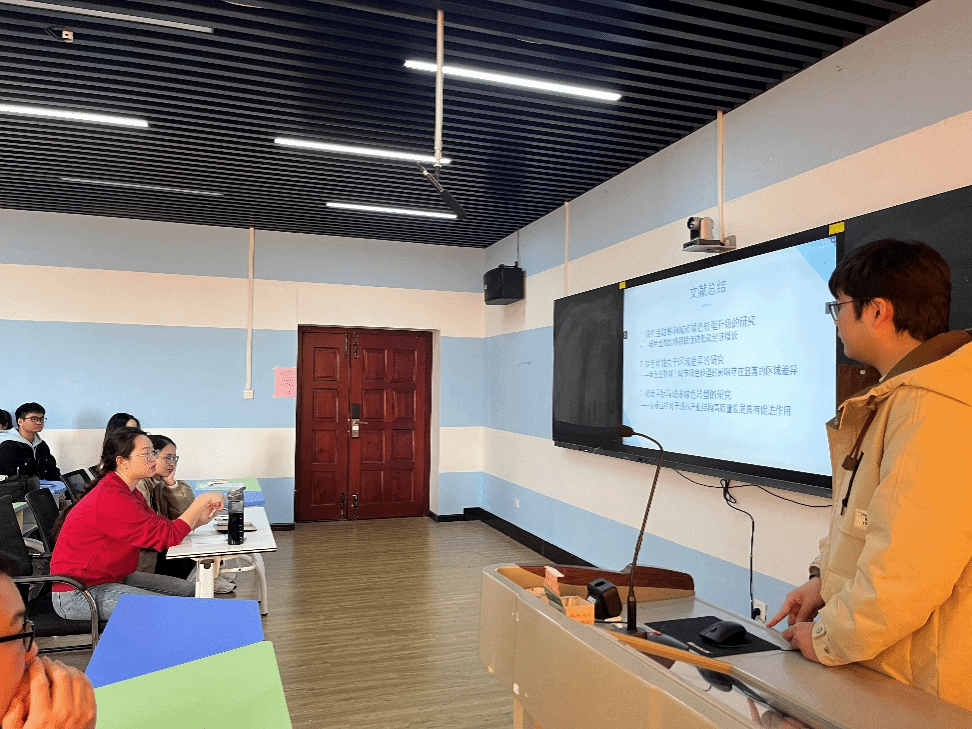 论坛上,五名主讲人从不同的角度和层面,探讨了各自的研究方向,分享他们最近的学术研究成果。邵涵同学基于“双碳”背景下绿色金融的发展,分析绿色金融对城市绿色转型的作用机制和作用效果;朱星烨同学引入数字化转型作为背景,探讨数字化转型对进口竞争与企业创新的影响机制;徐晓晨同学通过自建数据集、量化评估的方法,进一步探讨减税降费政策对小微企业生存能力的影响;廖燏同学通过阅读与梳理有关ESG评级分歧的相关文献,提出未来的写作方向;纪浩同学基于区域经济可持续发展视角,提出山东省环境保护财政支出效率研究。每位同学将自己的研究方法和研究成果从各自不同的角度进行阐述,内容完整,循序渐进,深入浅出,充分展现出我院研究生的学术实力和科研水平。