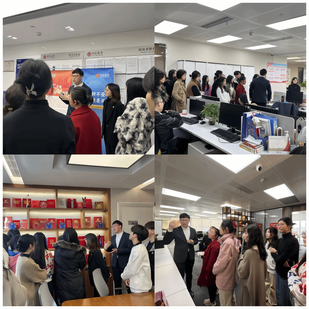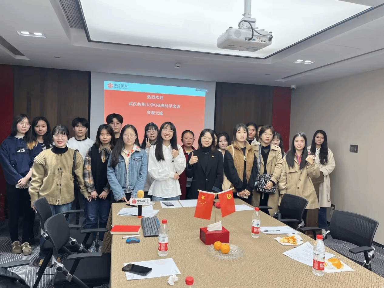 11月16日,金融学CFA方向班22级23级同学一行前往中信证券湖北分公司武汉天地营业部进行企业参访活动。此次活动帮助同学们丰富专业课程模块,鼓励同学们在实践中理解和转化专业知识,进一步清晰个人职业发展路径。中信证券分支机构市场总监肖芳、市场部康泽、周凌昊、苏雅丽,Beat365中文官方网站金融学CFA班运营人员一同组织参与了此次活动。