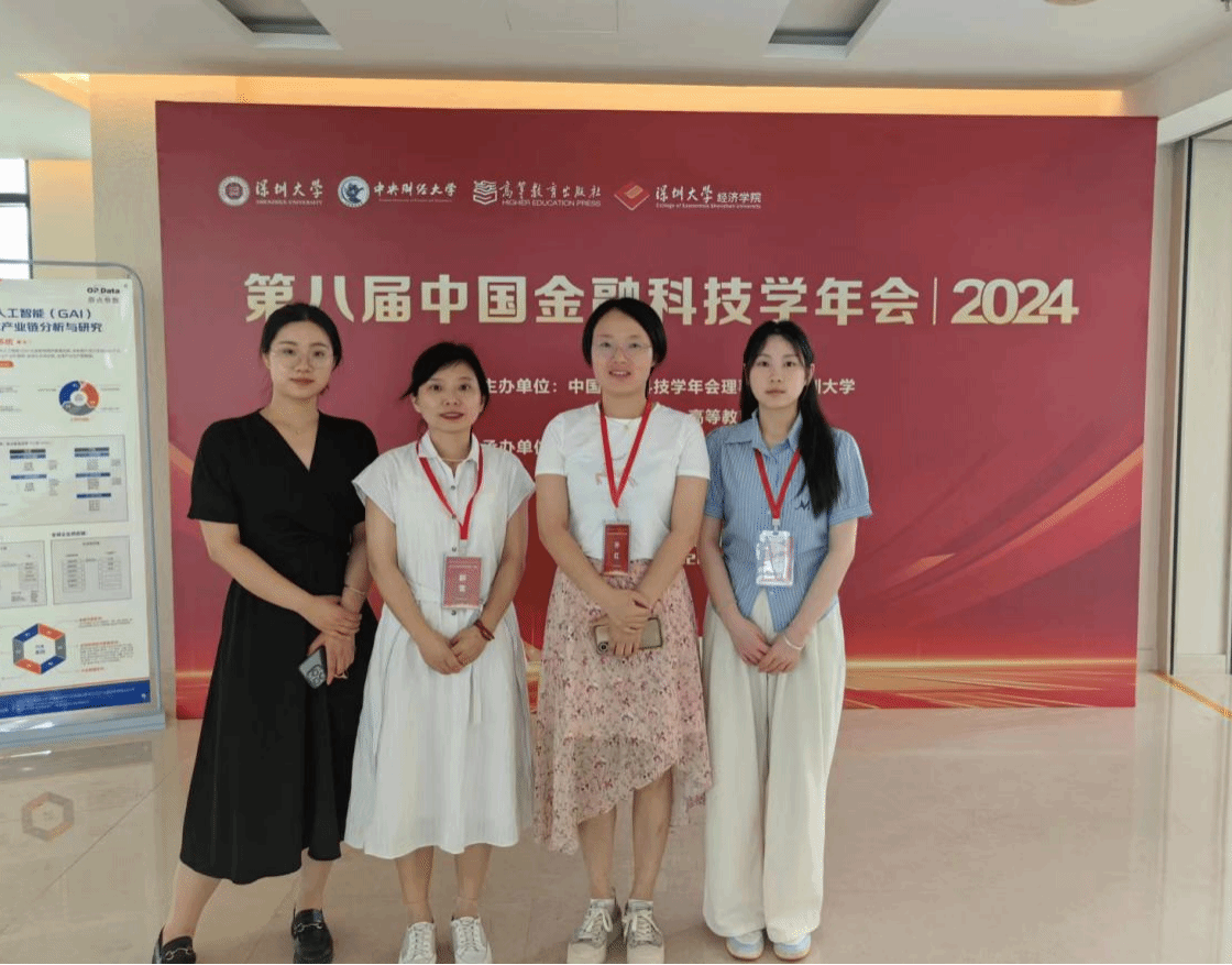 6月22日,2024年“第八届中国金融科技学年会”在广东省深圳市资本市场学院举行,该年会由中国金融科技学年会理事会、中央财经大学、深圳大学、高等教育出版社共同主办,深圳大学Beat365中文官方网站承办,会议就金融科技领域最新动态、重点问题、学术成果等展开深入研讨。我院郭雪老师和孙红老师带领研究生刘庆月和李明月等一行人应邀参加会议,参与了开幕式并聆听相关主旨报告。