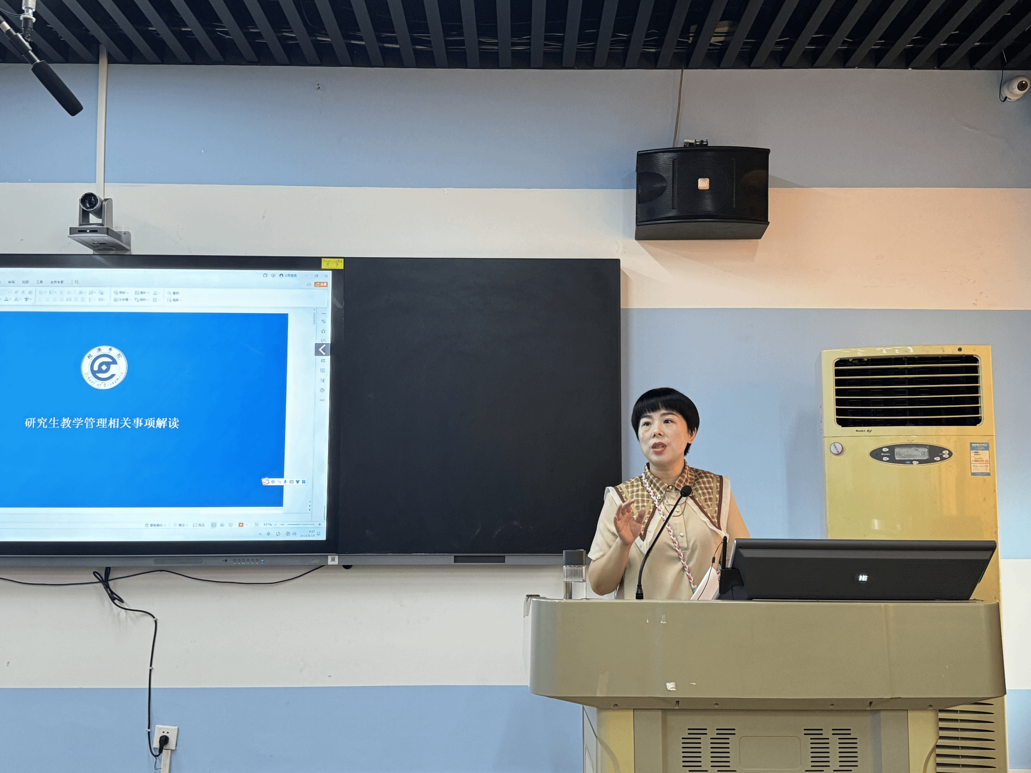 会上,张琴老师围绕“个人管理、培养管理及毕业要求”三大核心板块,逐一展开了深入解读。在个人管理方面,她强调了学期报道注册、学生入学登记的时效性,以及乘车区间维护的便捷性,同时细致说明了与指导老师双选工作的流程与注意事项,助力学生顺利开启学术旅程。针对培养管理,张琴老师详细介绍了培养方案的查看路径、培养计划提交的规范要求,并指导学生如何高效利用学生课表查询功能,还就课程免修申请的条件与流程进行了说明,确保每位学生都能个性化规划学习路径。
