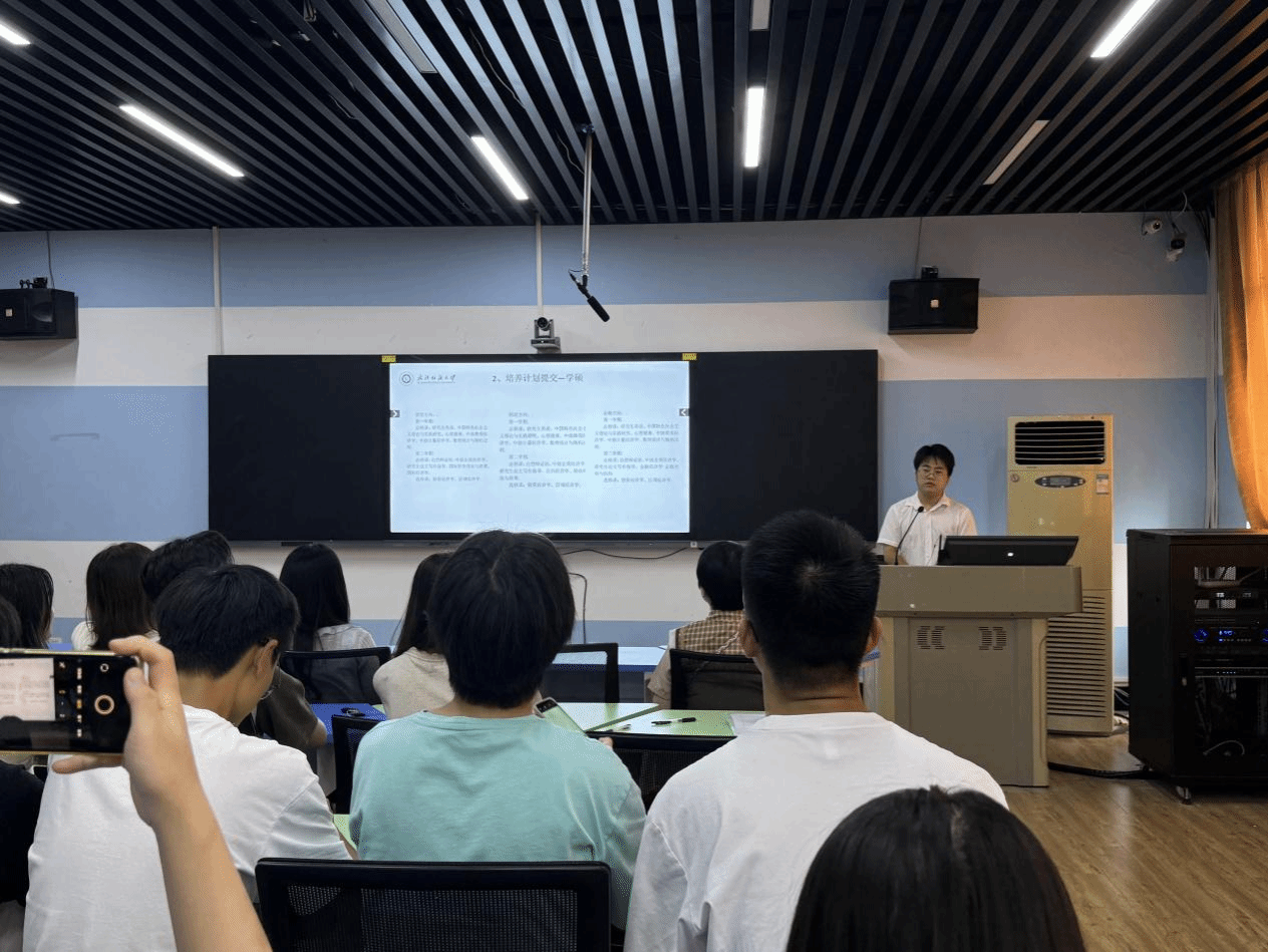 裴硕同学以其卓越的学术成就和丰富的实践经验,成为了同学们眼中的“学海灯塔”。他站在学长的角度,结合个人成长经历,生动讲述了如何在学院培养方案的框架下,巧妙融合个人兴趣与职业规划,制定出既科学又个性化的学习计划。并且详细分享了他在课程选修、研究方向确定以及时间管理上的独到见解,鼓励同学们勇于探索未知领域,不断挑战自我,实现学术与职业的双赢。