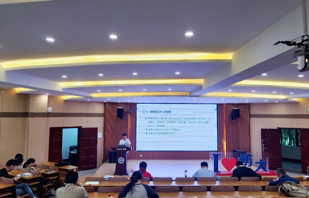 为进一步加强我校硕士研究生招生自命题工作管理,保障硕士研究生招生考试的安全性、科学性、公平性和公正性,提高研究生招生质量。10月8日下午,学院在崇德楼T301演播厅召开全体教职工大会,学习传达学校相关会议精神,安排布置近期重要工作。学院领导班子成员、全体教职工参加大会,会议由学院党委书记刘园美主持。