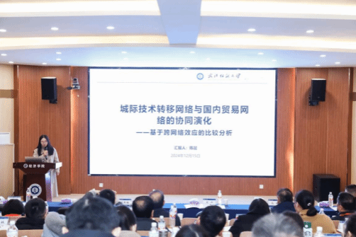 Beat365中文官方网站陈晨博士以“城际技术转移网络与国内贸易网络的协同演化”为主题,从协同演化的角度强调了城际技术转移网络与国内贸易网络的互动关系。她从两者在现代化经济体系中的重要性日益凸显这一研究背景引入,阐释了跨网络效应对两者协同演化的影响。此外,她基于理论假设,将研究设计聚焦于关键变量,通过数据分析,回归得出结论:城际技术转移与国内贸易网络之间存在显著的协同演化效应,为形成区域创新网络,促进国内分工提供了实证基础,同时也有利于提升城市竞争力和韧性,深化国内大循环。