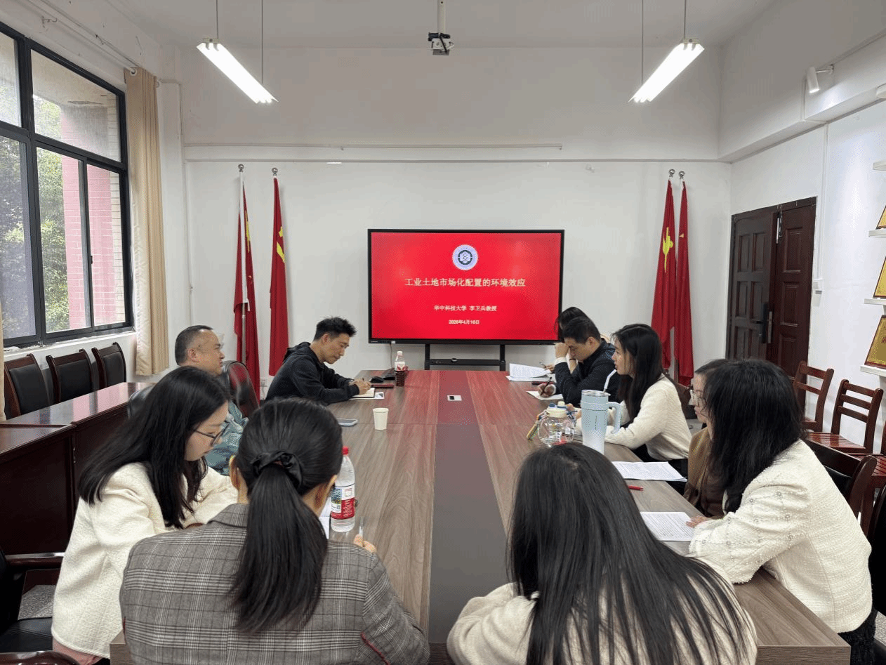 李卫兵以工业土地市场化配置为切入点,系统构建了包含土地要素的DSGE动态分析框架,清晰揭示了土地制度改革对环境治理的传导机制与政策效应,为解决 “要素配置与绿色发展” 协同难题提供了全新的研究视角。李卫兵的讲座兼具理论深度与实践价值,其研究逻辑严谨、数据扎实,不仅展示了前沿的研究范式,也为环境经济学与区域发展交叉领域的研究提供了重要启发。报告结束之后,老师们与李卫兵就该主题进行了交流与讨论,现场学术氛围浓厚。