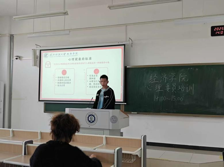为进一步加强心理健康教育工作,提升心理委员的专业素养与履职能力,11月27日,学院团委学生会成长服务部于崇祯楼218教室组织开展2025级心理委员专题培训会。本次培训由成长服务部部长卢睿智主讲,围绕“心理健康知识概述”“心理委员角色定位”及“心理健康干预技巧”三大模块系统展开。