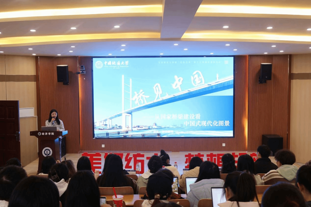 以国家桥梁建设看中国式现代化图景为主题,谭章洋从“桥见历史,桥见当代,桥见理论,桥见未来”四个方面讲述桥梁建设中的中国式现代化。她分享了武汉桥梁建设的艰辛历程,历经建成学会、自力更生、奋发追赶、创新提高、超越引领五个阶段,实现从“跟跑”到“并跑”再到部分“领跑”的跨越,彰显了中国桥梁建设的伟大成就。在桥见当代环节,谭章洋聚焦长江武汉段桥梁,阐述其重要价值及对人民生活、经济文化发展的积极影响,展现其作为中国式现代化生动缩影的意义。谭章洋结合桥梁建设解读中国式现代化理论,强调在关键时期,把握该理论对强国建设、民族复兴的重要性。她呼吁,“青年在现代化建设中担当作为,要积极投身实践,在祖国需要的地方绽放青春;勇于担当奉献,在各领域争当排头兵;奋发进取,激发创新活力。”