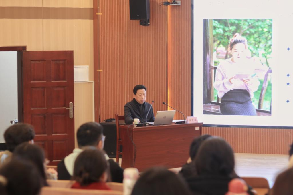 程碧海以往届优秀学子为例,嘱咐同学们要把稳青春之舵,坚定理想信念,在青春的赛道上奋力跑出最好的成绩。他详细阐释了当前考研、考公、留学等对学生的不同要求,提醒大家要早做规划、提前铺路,在立志立行中不断锤炼本领、提升能力,在求知的道路上拼搏奋斗、不留遗憾,在实现中国梦的伟大征程中争做先锋、砥砺前行。程碧海的殷殷嘱托,真切的话语感染了在场的每一位同学。