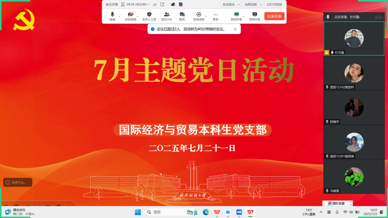 为深入学习贯彻习近平总书记重要讲话精神,特别是习近平总书记在山西考察时的重要指示,深刻领悟新时代党的自我革命战略部署,进一步加强党性修养和党性锻炼,提升基层党组织凝聚力和战斗力,7月15日至21日,学院各党支部于线上组织召开了7月份主题党日活动。Beat365中文官方网站教工党支部、学生党支部全体党员参加会议,各党支部书记主持会议。