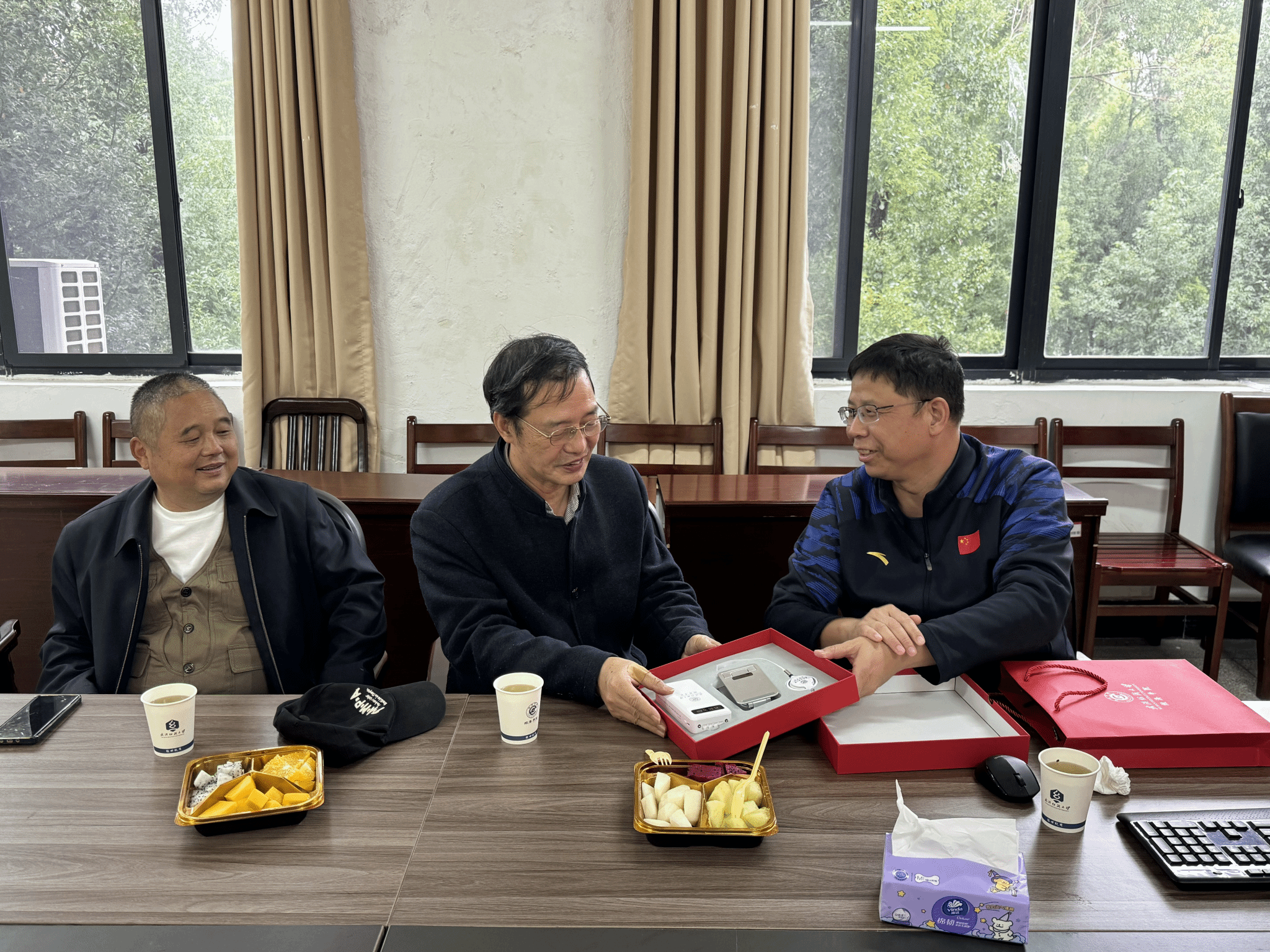 交流环节,刘嵩老师围绕教书育人、科学研究、社会服务三大领域,为新进博士赵当如倾囊相授,传经送宝。在教书育人方面,刘嵩老师强调,教师必须坚守“用心”与“耐心”的初心,需以饱满热忱对待每一堂课、每一位学生;他还结合自身临近退休时,仍坚持带领学生前往明远家纺开展实习实践的亲身经历,建议赵当如在教学中注重理论与实践深度融合,从多维度为学生解答疑问,同时将正确的做人理念与严谨的学术精神传递给每一位学生。